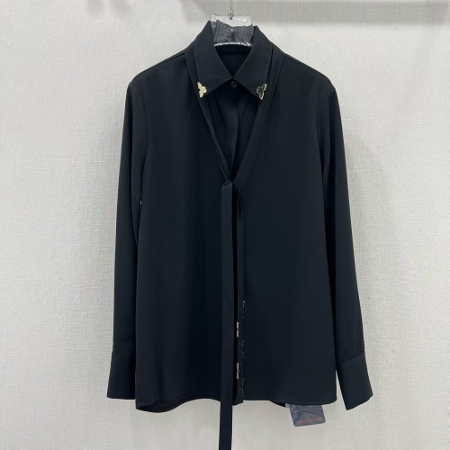 • 루이비통 LOUIS VUITTON 2024 SS 캐릭터 로고 끈리본 블랙 카라 긴팔 여성 셔츠 커스텀급