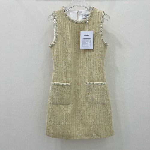 • 샤넬 CHANEL 2024 SS 캐릭터 로고 진주 큐빅 포켓 여성 원피스 커스텀급