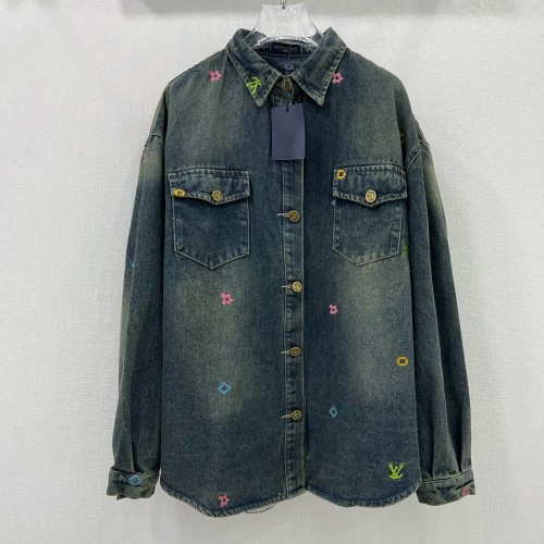 • 루이비통 LOUIS VUITTON 2024 SS 캐릭터 로고 자수 카라 긴팔 여성 청셔츠 커스텀급