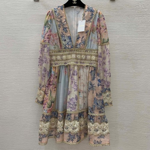 • 짐머만 ZIMMERMANN 2024 SS 캐릭터 로고 레이스 카라 긴팔 여성 원피스 커스텀급