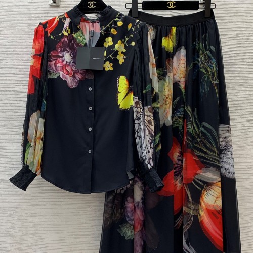 • 디앤지 D&G 2024 SS 캐릭터 로고 플라워 프릴 셔츠 치마 여성 세트 커스텀급