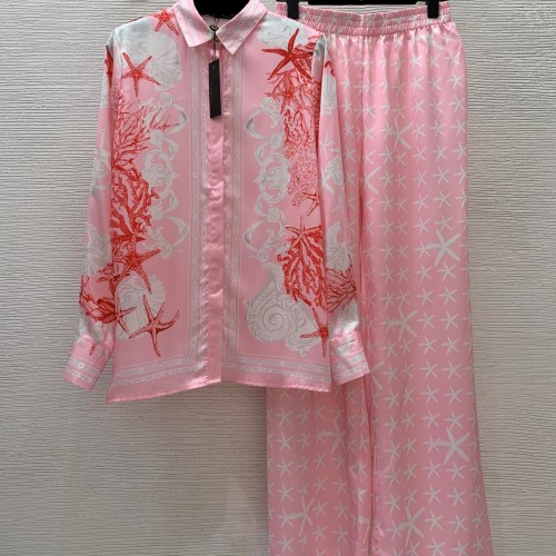 • 베르사체 VERSACE 2024 SS 캐릭터 로고 카라 셔츠 바지 여성 세트 커스텀급