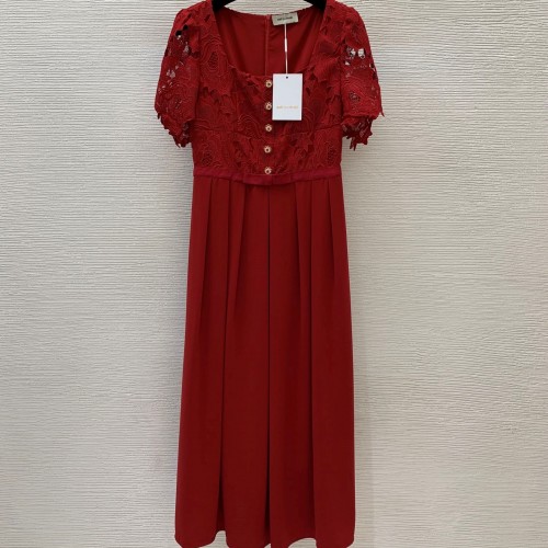 • 셀프 포트레이트 Self-portrait 2024 SS 캐릭터 로고 레이스 레드 여성 원피스 커스텀급
