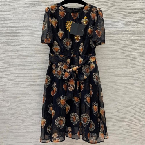 • 디앤지 D&G 2024 SS 캐릭터 로고 리본벨트 반팔 여성 원피스 커스텀급