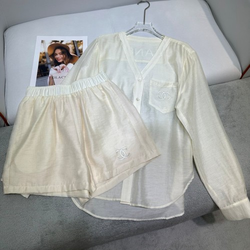 • 샤넬 CHANEL 2024 SS 캐릭터 로고 긴팔 상의 반바지 여성 세트 커스텀급