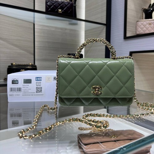• CHANEL 2024 SS 샤넬 체인 램스킨 핸들 미니 WOC백 그린 AP4166 여성 가방 커스텀급