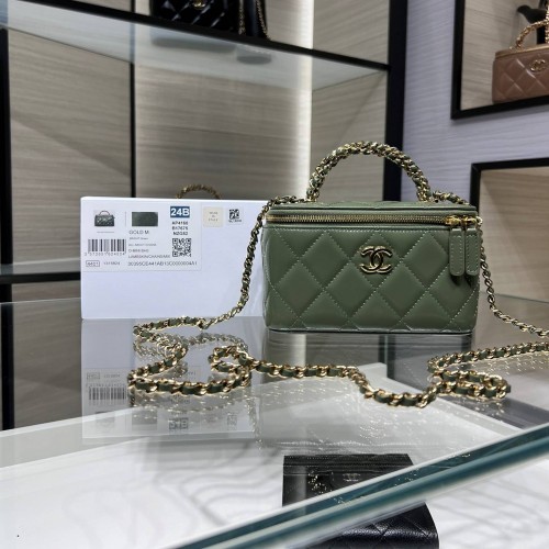 • CHANEL 2024 SS 샤넬 체인 램스킨 핸들 베니티 미니백 그린 AP4168 여성 가방 커스텀급