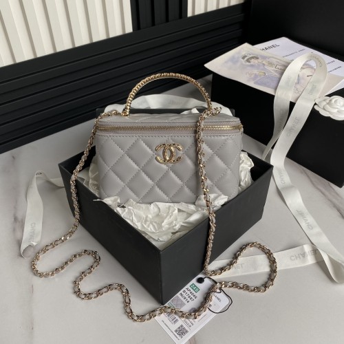 • CHANEL 2024 SS 샤넬 체인 램스킨 베니티 탑 핸들백 그레이 AP4046 여성 가방 커스텀