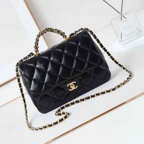 • CHANEL 2024 SS 샤넬 체인 램스킨 골드메탈 미니 핸들 플랩백 블랙 AS5043 여성 가방 커스텀