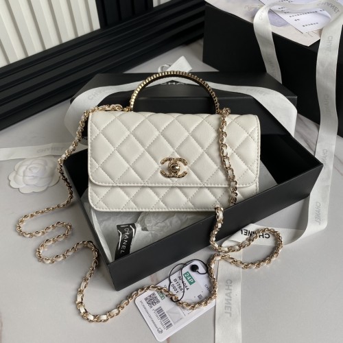 CHANEL 2024 SS 샤넬 체인 램스킨 골드메탈 미니 핸들 플랩백 화이트 AP4044 여성 가방 커스텀 요약정보 및 구매