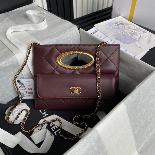 CHANEL 2024 SS 샤넬 체인 램스킨 골드메탈 포켓 클러치백 버건디 AS5038 여성 가방 커스텀 요약정보 및 구매
