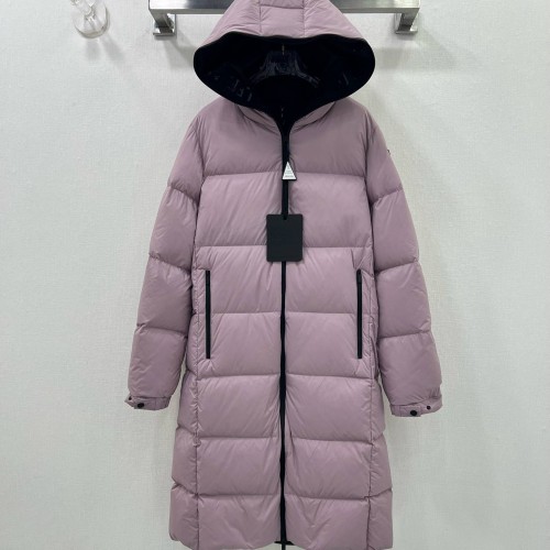 • MONCLER 2024 SS 몽클레어 투톤 로고 후드 핑크 여성 롱패딩 커스텀급