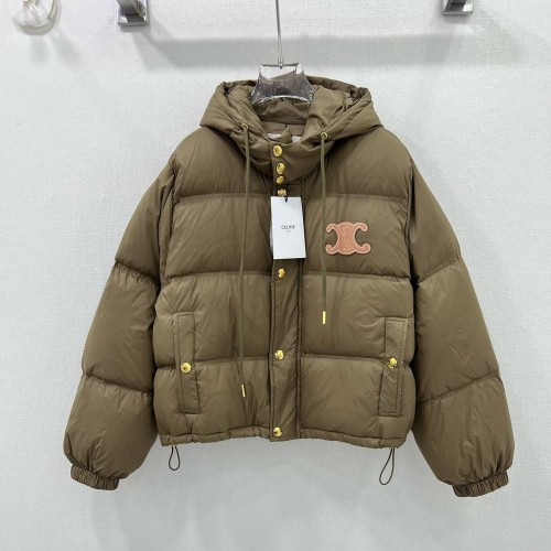 • CELINE 2024 SS 셀린느 퀄팅 후드 로고 포켓 카키 여성 패딩 커스텀급