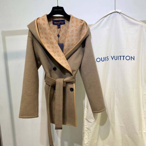 • LOUIS VUITTON 2024 SS 루이비통 모노그램 후드 벨트 딥베이지 캐시미어 100% 업뎃버젼 여성 중코트 커스텀급