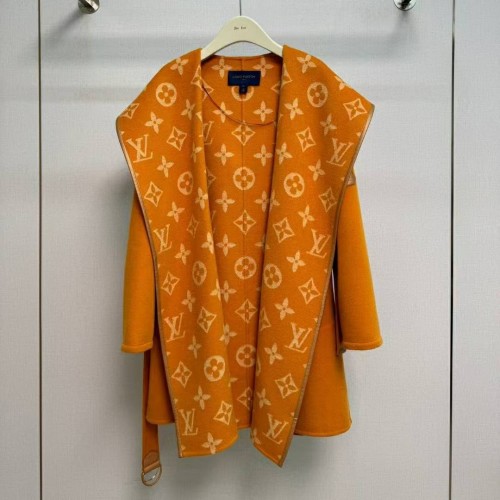 • LOUIS VUITTON 2024 SS 루이비통 모노그램 후드 오렌지 캐시미어 100% 업뎃버젼 여성 롱코트 커스텀급