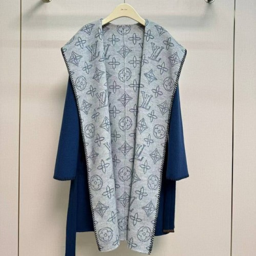 • LOUIS VUITTON 2024 SS 루이비통 모노그램 후드 블루 캐시미어 100% 업뎃버젼 여성 롱코트 커스텀급