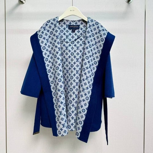 • LOUIS VUITTON 2024 SS 루이비통 모노그램 후드 투톤 블루 캐시미어 100% 업뎃버젼 여성 중코트 커스텀급
