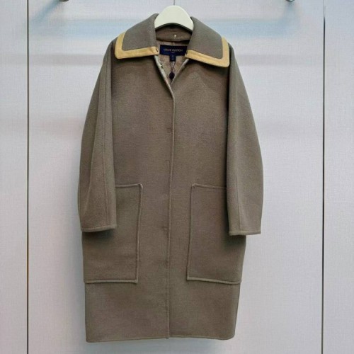 • LOUIS VUITTON 2024 SS 루이비통 모노그램 카라 카키 캐시미어 100% 업뎃버젼 여성 롱코트 커스텀급