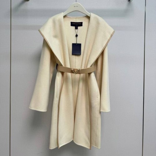 • LOUIS VUITTON 2024 SS 루이비통 모노그램 후드 아이보리 캐시미어 100% 업뎃버젼 여성 롱코트 커스텀급