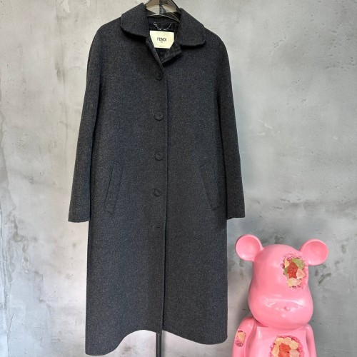 • FENDI 2024 SS 펜디 카라 벨트 딥그레이 캐시미어 100% 업뎃버젼 여성 롱코트 커스텀급