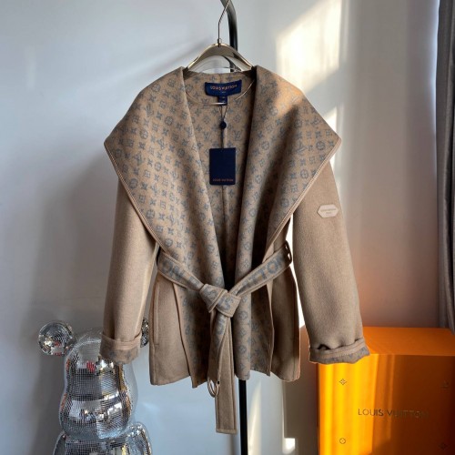 • LOUIS VUITTON 2024 SS 루이비통 모노그램 후드 벨트 딥베이지 캐시미어 100% 업뎃버젼 여성 중코트 커스텀급