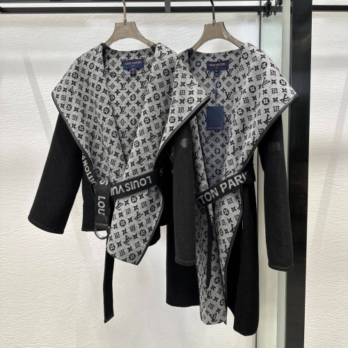 • LOUIS VUITTON 2024 SS 루이비통 모노그램 후드 벨트 블랙 캐시미어 100% 업뎃버젼 여성 코트 커스텀급