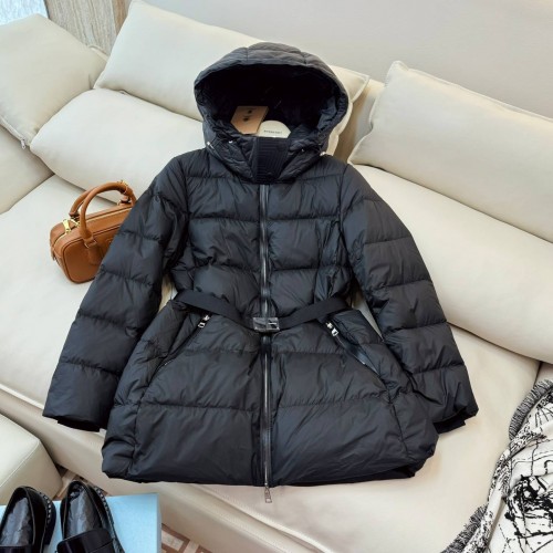 • BURBERRY 2024 SS 버버리 퀄팅 후드 지퍼포켓 벨트 블랙 여성 중패딩 커스텀급