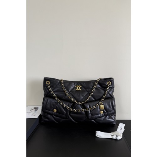 • CHANEL 2025 SS 샤넬 체인 램스킨  블랙 여성 가방 커스텀급샤넬  AS5740