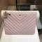샤넬 V퀄팅 램스킨 금장 악세사리 연핑크 클러치백 커스텀