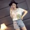 디앤지 화이트 플라워 자수 반팔티 청반바지