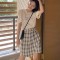 끌로에 CHLOE 2020 SS 퍼프 반팔티 체크 비대칭 스커트 여성 세트