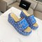 샤넬 CHANEL 2024 SS 체크 트위드 블루 여성 웨지힐 슬리퍼 커스텀급