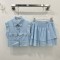 샤넬 CHANEL 2024 SS 캐릭터 로고 큐빅 카라 민트 블라우스 스커트 여성 세트 커스텀급