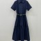 디올 DIOR 2024 SS 캐릭터 로고 자수 벨트장식 카라 네이비 반팔 여성 원피스 커스텀급