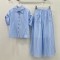 샤넬 CHANEL 2024 SS 캐릭터 로고 스트라이프 카라 블라우스 치마 민트 여성 세트 커스텀급
